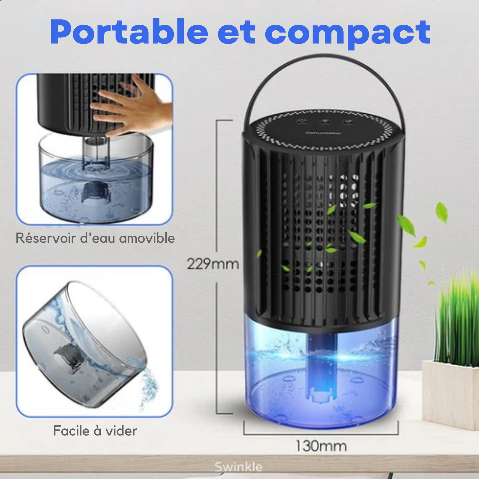 Le déshumidificateur Swinkle® offre d'excellentes performances de déshumidification, réduisant l'humidité dans votre maison et créant un environnement plus agréable et plus sain. Son design compact et silencieux vous permet de le placer n'importe où dans votre maison, tout en profitant de la tranquillité d'esprit et du confort.