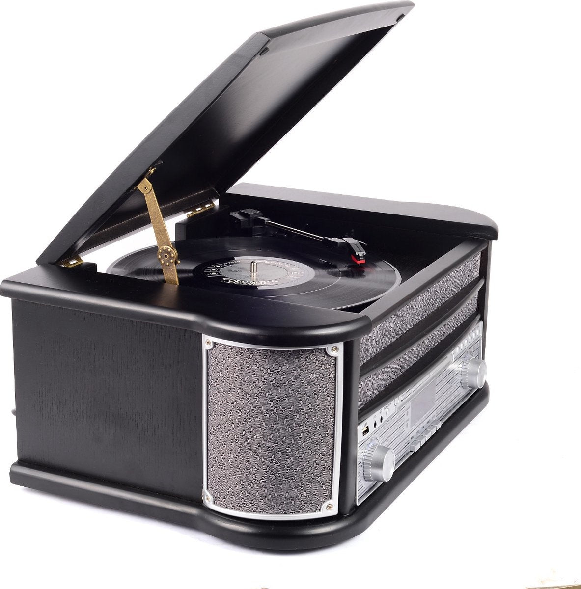 - Lecture polyvalente : capable de lire des disques vinyles, des CD, des cassettes, la radio FM, la radio DAB et des fichiers MP3, offrant une gamme complète d'options de divertissement musical.