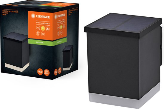 LEDVANCE ENDURA STYLE SOLAR WALL luminaire extérieur, 0,5W, 50lm, applique, gris foncé, éclairage indirect, batterie rechargeable, indice de protection IP44, température de couleur 3.000K, couleur blanc chaud, applique murale