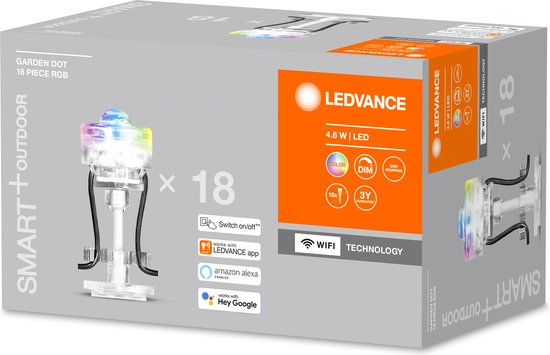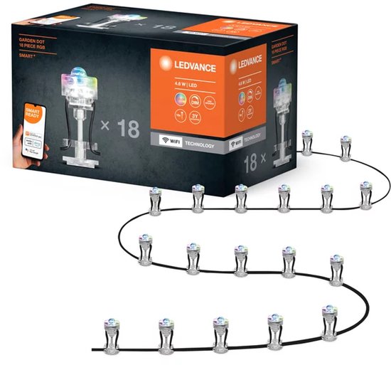 Points décoratifs pour l'extérieur dotés de la technologie Wifi. Caractéristiques du produit : contrôlable avec l'application LEDVANCE SMART+ WiFi (nécessite au moins Android 4.4 ou iOS 9). La commande vocale est disponible via Google Assistant ou Amazon Alexa. Contrôle des couleurs RVB avec environ 16 millions de couleurs réglables. Dimmable. Classe de protection : IP65. Classe de protection pour l'alimentation électrique : IP44. Il est possible de connecter jusqu'à 18 points. Avantages du produit : installation rapide et facile. Éclairage coloré pour le jardin avec des options de contrôle intelligentes et avancées. Domaines d'application : jardins, balcons et autres espaces extérieurs. Spécifications techniques : alimentation électrique uniquement incluse avec le kit de base. Le contrôle via l'application ou la voix nécessite un système domestique intelligent compatible. Le contrôle avec l'application LEDVANCE SMART+ WiFi nécessite un smartphone ou une tablette.