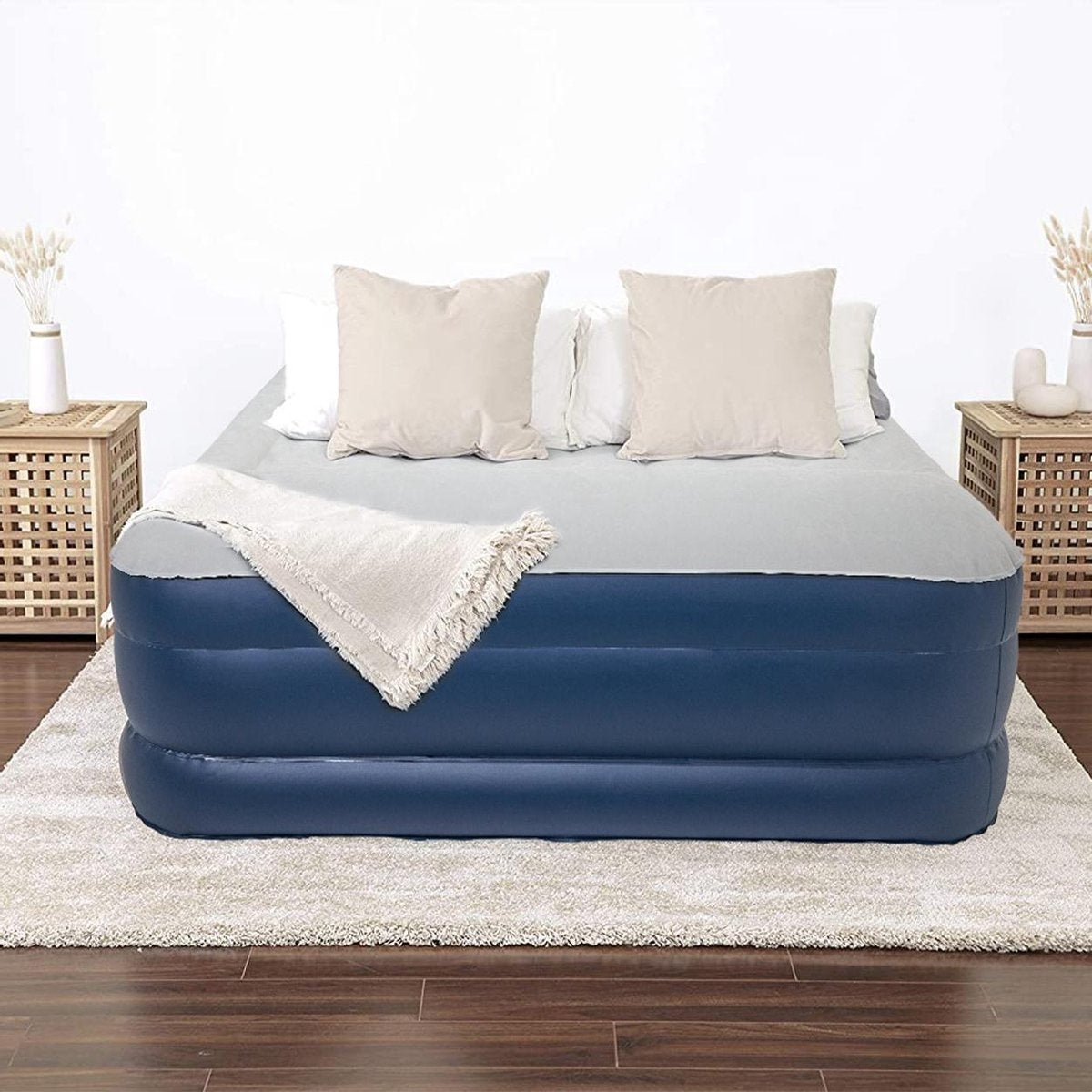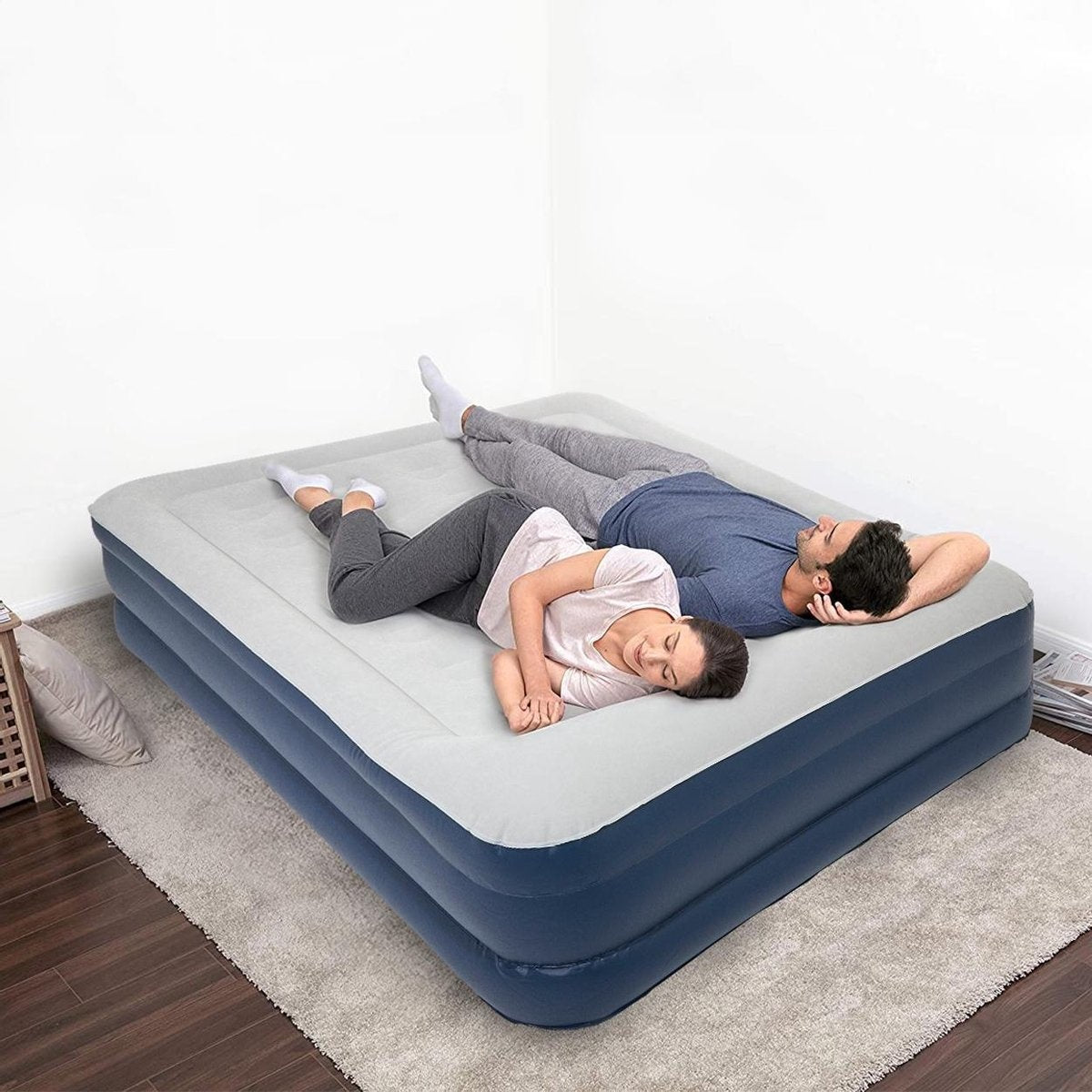 La pompe électrique intégrée permet un gonflage et un dégonflage rapides en environ 3 minutes. Aucun équipement additionnel n’est nécessaire, ce qui en fait une solution pratique à la maison comme en déplacement. Le matelas est conforme aux normes européennes et conçu pour durer, avec une excellente résistance aux variations de température.