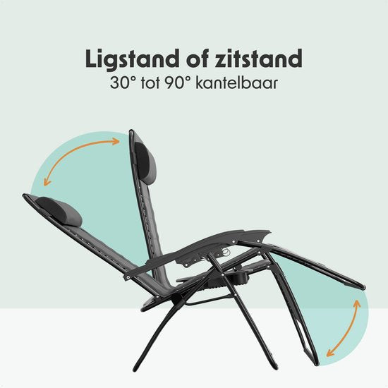 LifeGoods Lounger Comfort - pliable - réglable de 30° à 90° - support pour gobelets et téléphone - chaise de jardin - noir