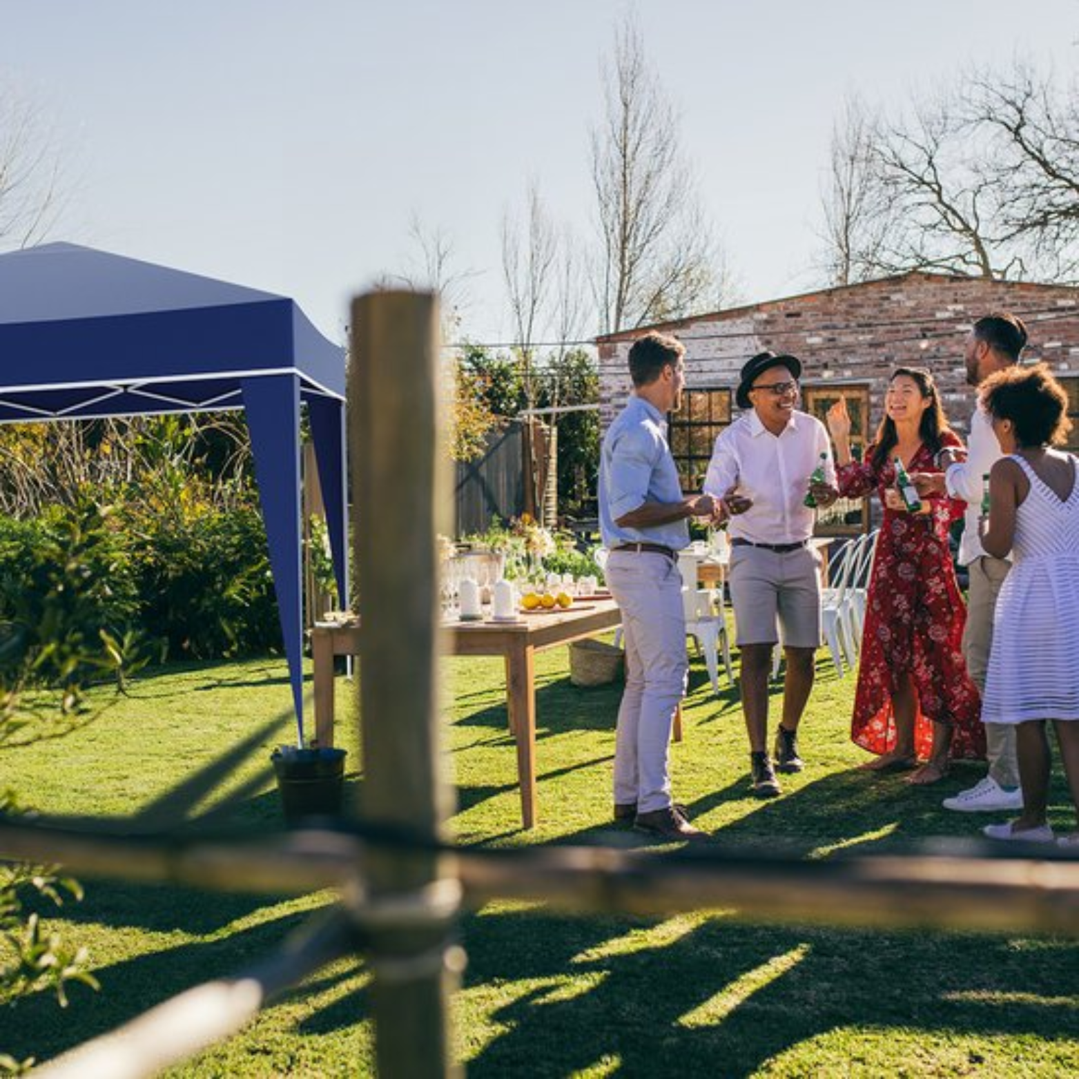 La tente de réception convient à de nombreuses surfaces différentes. L'herbe, le sable et les surfaces plus dures comme la pierre en sont des exemples. Vous pouvez donc utiliser la tente de réception dans toutes sortes d'endroits. Du jardin à la plage ! D'un barbecue dans le parc à un événement professionnel sur la terrasse de votre bureau !