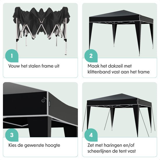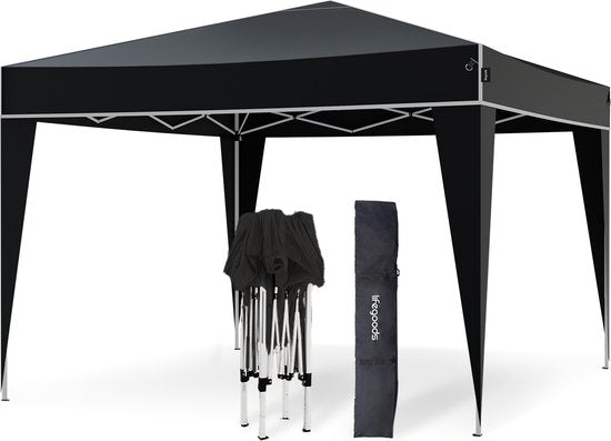 LifeGoods Party Tent Plus - Tente pliante - 3x3 m - Montage facile - Armature renforcée - Imperméable - Sac de transport - Noir
