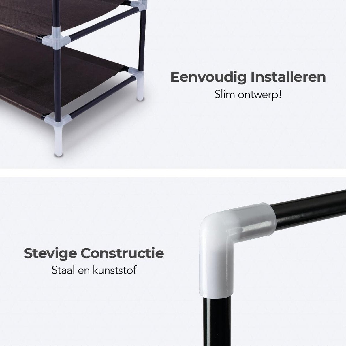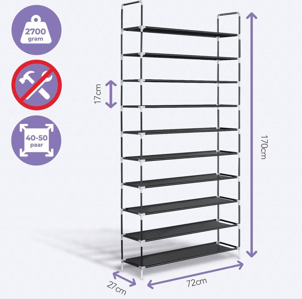 - Contenu du paquet : 1x XXL Shoe Rack (82x Steel frame parts, 44x Plastic connectors, 10x Vinyl shelves) 1x Instructions