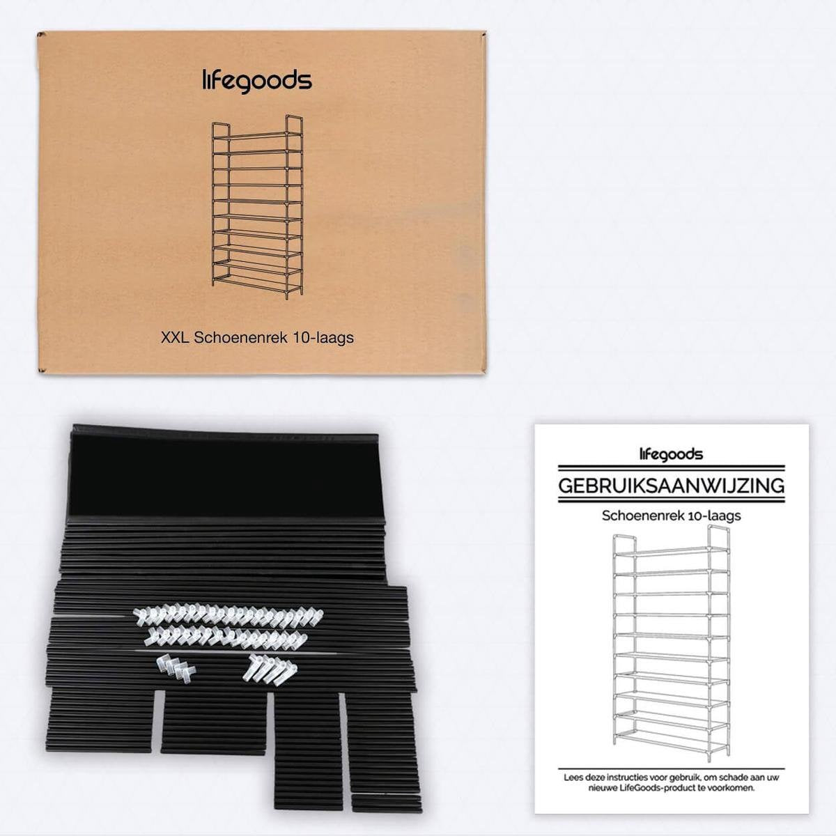 LifeGoods Shoe Rack - XXL - 10 couches - 35 à 40 paires de chaussures - Armoire à chaussures - Plastique - Noir