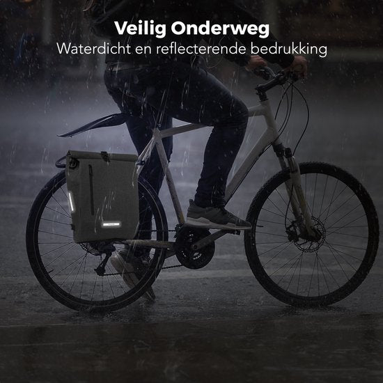 LifeGoods Single Bicycle Bag - Compact - Sac à bandoulière et sac à dos - 25L - Porte-bagages ronds - Imperméable - Gris