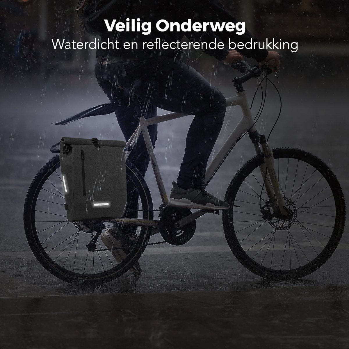 Avec le sac à vélo LifeGoods, vous pouvez être sûr que vos affaires resteront au sec. La sacoche pour vélo est conforme à la norme IPX5. Cela signifie que même en cas d'averse, vos affaires ne seront pas mouillées. La sacoche est également dotée d'un logo réfléchissant. Ainsi, vous êtes toujours visible, même les jours de pluie ou dans l'obscurité.