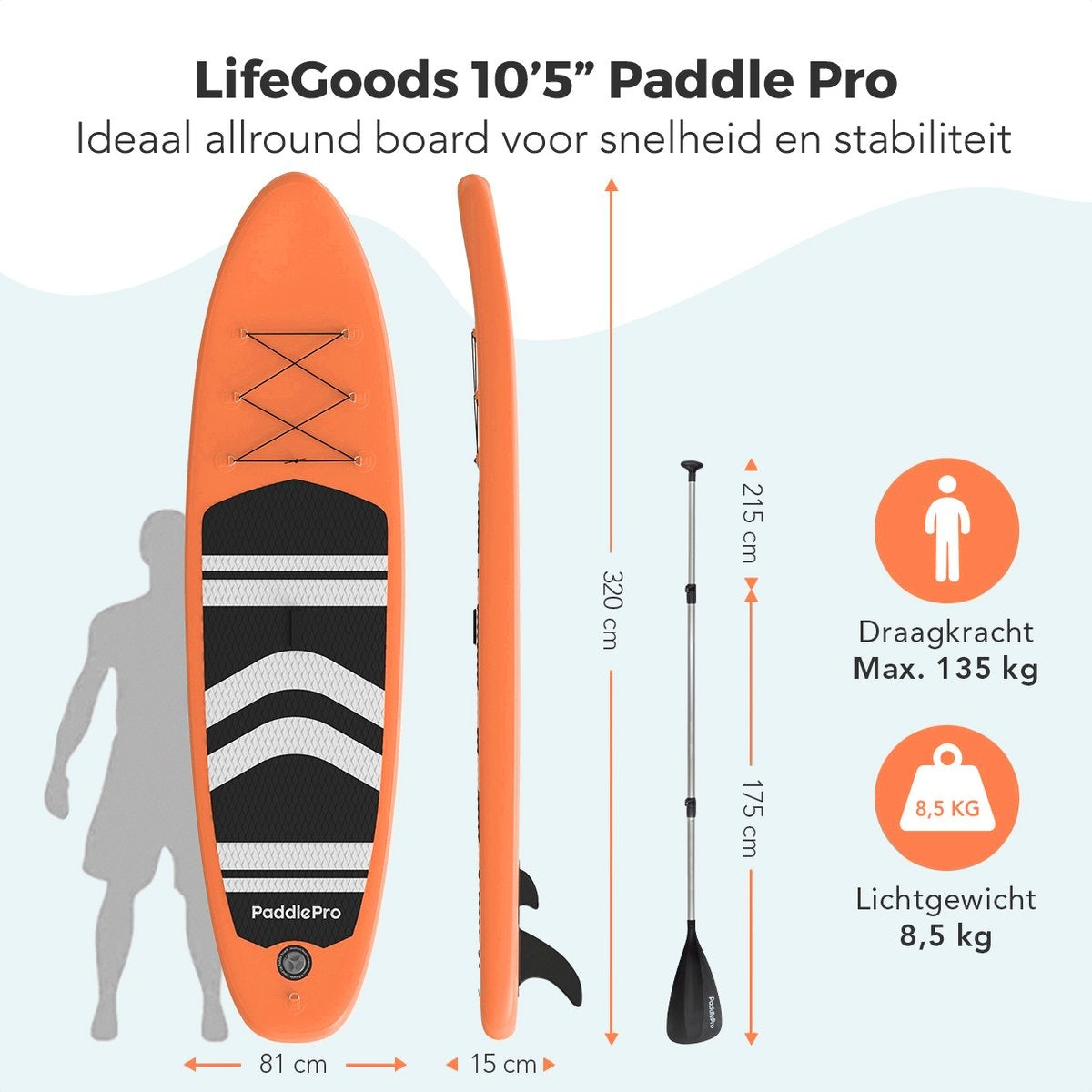 Vous êtes déjà monté sur une planche de SUP ou vous l'essayez pour la première fois ? La planche de SUP LifeGoods convient aux suppers expérimentés et novices. La pagaie est extensible de 175 à 215 cm, ce qui vous permet de l'adapter à votre taille. Utilisez la planche de SUP pour un entraînement complet du corps ou restez assis tranquillement pour une séance de méditation. En outre, vous pouvez utiliser la planche de SUP aussi bien en eau douce qu'en eau salée. Parfait pour emporter en vacances !