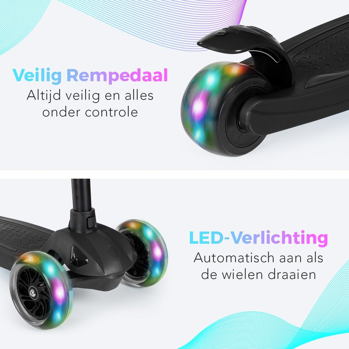 LifeGoods TurboRide Kids' Scooter - Step 5-8 Years - 3 Luminous Wheels - Boys/Girls - Black