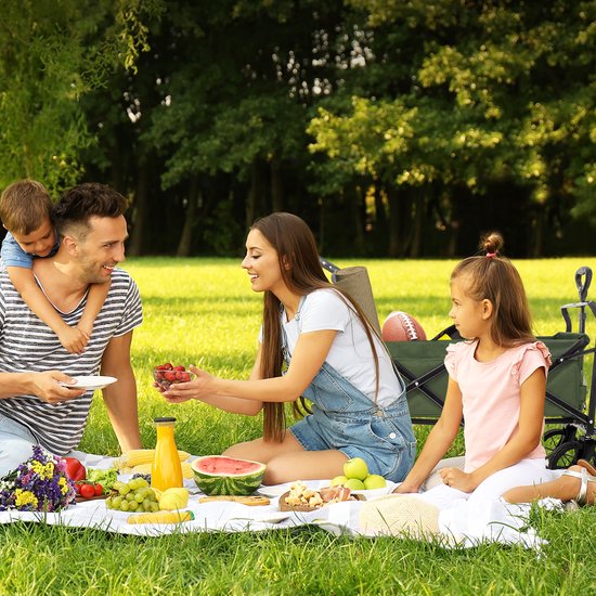 Ne trimballez plus jamais d'objets lourds grâce au LifeGoods Bolderkar ! Avec ses roues pivotantes à 360° et sa barre de poussée réglable, ce chariot se déplace en douceur sur tous les terrains. Avec une capacité de charge de pas moins de 120 kg et un frein pratique, il offre le nec plus ultra en matière de confort. De plus, le chariot est pliable, ce qui permet de le ranger facilement après utilisation. Idéal pour les pique-niques, les journées à la plage ou toute autre sortie.