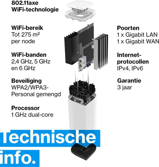 - Velop Pro WiFi 6E est conçu avec la plateforme de mise en réseau Qualcomm® Immersive Home 316 pour une expérience WiFi 6E ultime.