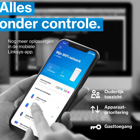 L'application Linksys est le partenaire ultime de votre expérience WiFi. En quelques minutes, vous configurez tout et accédez à votre réseau via l'application mobile Linksys. Donnez facilement la priorité aux appareils connectés lorsque c'est nécessaire. Téléchargez l'application gratuite Linksys pour configurer et gérer votre réseau et vos appareils depuis n'importe où. Elle est gratuite, facile à utiliser et fonctionne parfaitement.