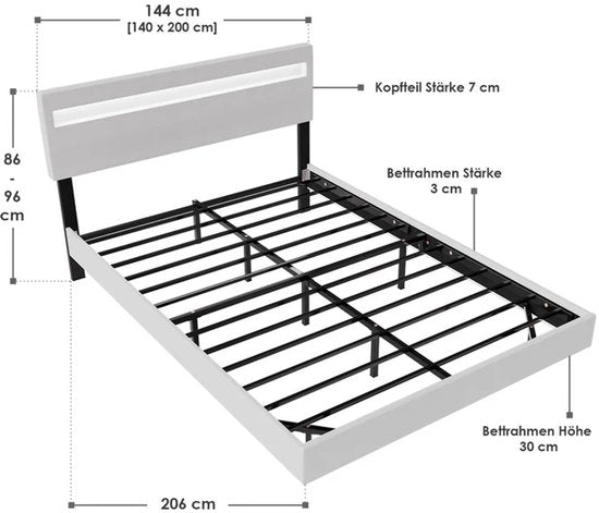 Lit suspendu Lisbon - 140x200cm - Cuir synthétique - Incl. LED - Blanc