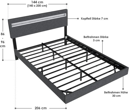 Profitez du luxe pendant votre sommeil avec le lit flottant Lisbon de 140 x 200 cm. En blanc élégant, avec une finition en similicuir et un design flottant, créez une oasis moderne. L'éclairage LED intégré et le dossier réglable assurent à la fois le confort et le style de ce lit double robuste.