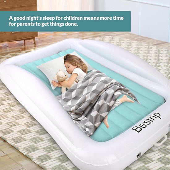 Lit gonflable pour enfants avec pompe électrique et protection contre les chutes - Lit de voyage 2 en 1 pour enfants 157 x 96 x 30 cm