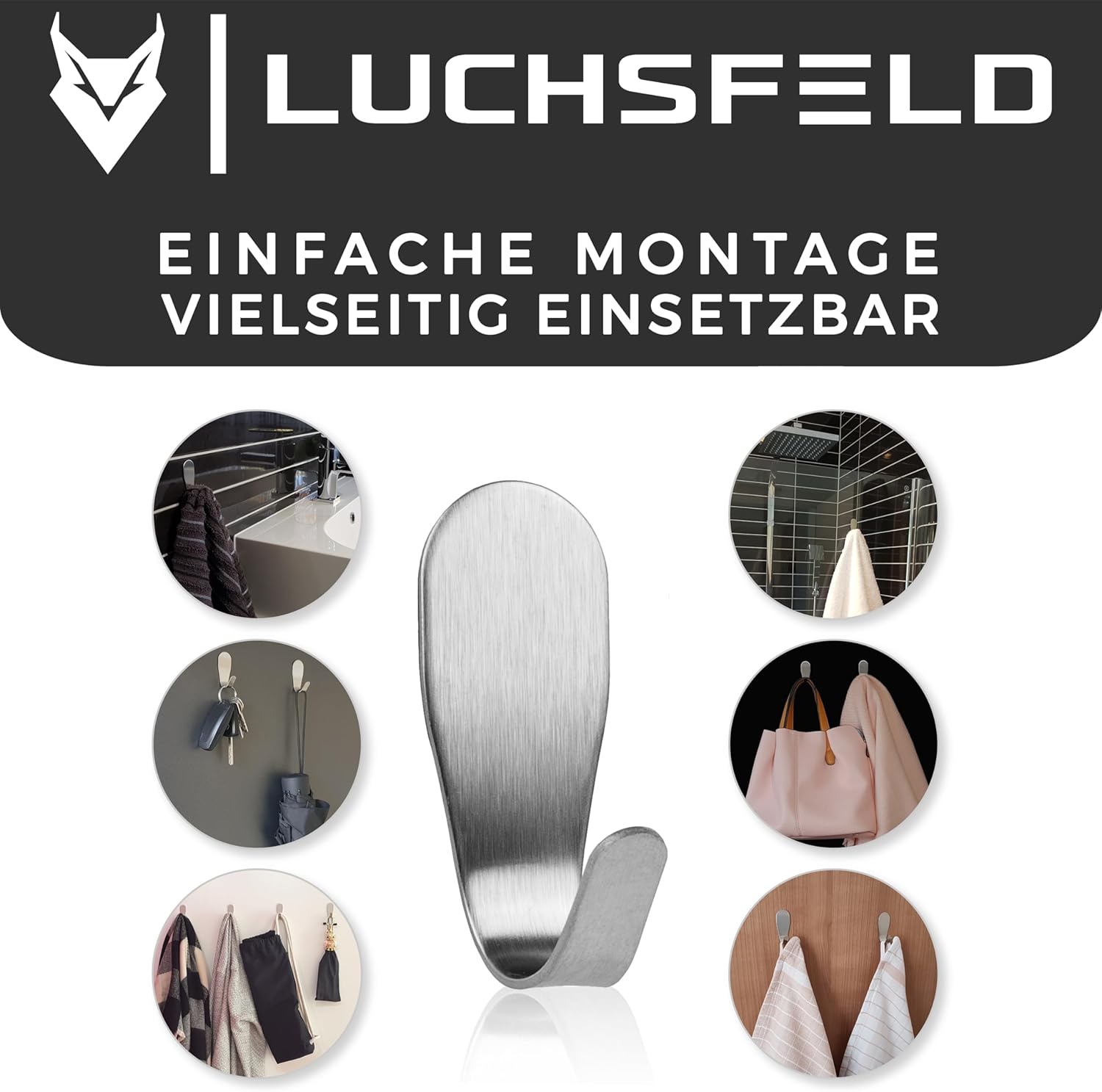 Les crochets à serviettes auto-adhésifs LUCHSFELD constituent une solution élégante et pratique pour suspendre des serviettes, des torchons, des clés et d'autres accessoires sans avoir à les percer. Fabriqués en acier inoxydable de haute qualité dans une finition argentée moderne, ces crochets s'intègrent parfaitement à tous les intérieurs, qu'ils soient épurés et minimalistes ou classiques et chaleureux.