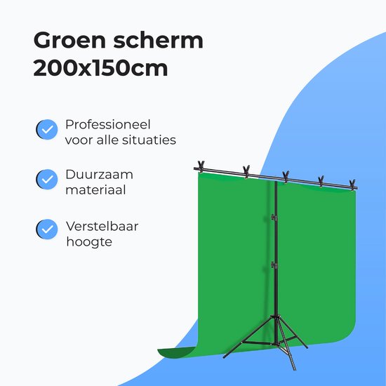 Le Green Screen Set est parfait pour les streamers, les photographes et les vidéastes qui souhaitent une solution d'arrière-plan professionnelle pour leur contenu. Avec une grande toile 200x150 cm et un trépied robuste, cet ensemble offre tout ce dont vous avez besoin pour une expérience chroma key sans faille. Le matériau de haute qualité minimise les reflets et offre une couleur uniforme, pour un résultat final époustouflant.