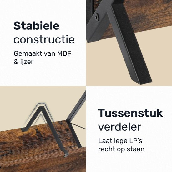 Avec le porte-disques Luft, votre collection recevra l'attention qu'elle mérite. Conçu avec le souci du détail, ce modèle est doté d'un cadre métallique robuste à revêtement en poudre. Les supports de disques en bois ajoutent un aspect naturel à l'ensemble.Trailing, ce qui fait de ce support un ajout élégant à votre intérieur. Parfait à côté du tourne-disque, dans le salon ou dans toute autre pièce où vous souhaitez exposer vos vinyles.