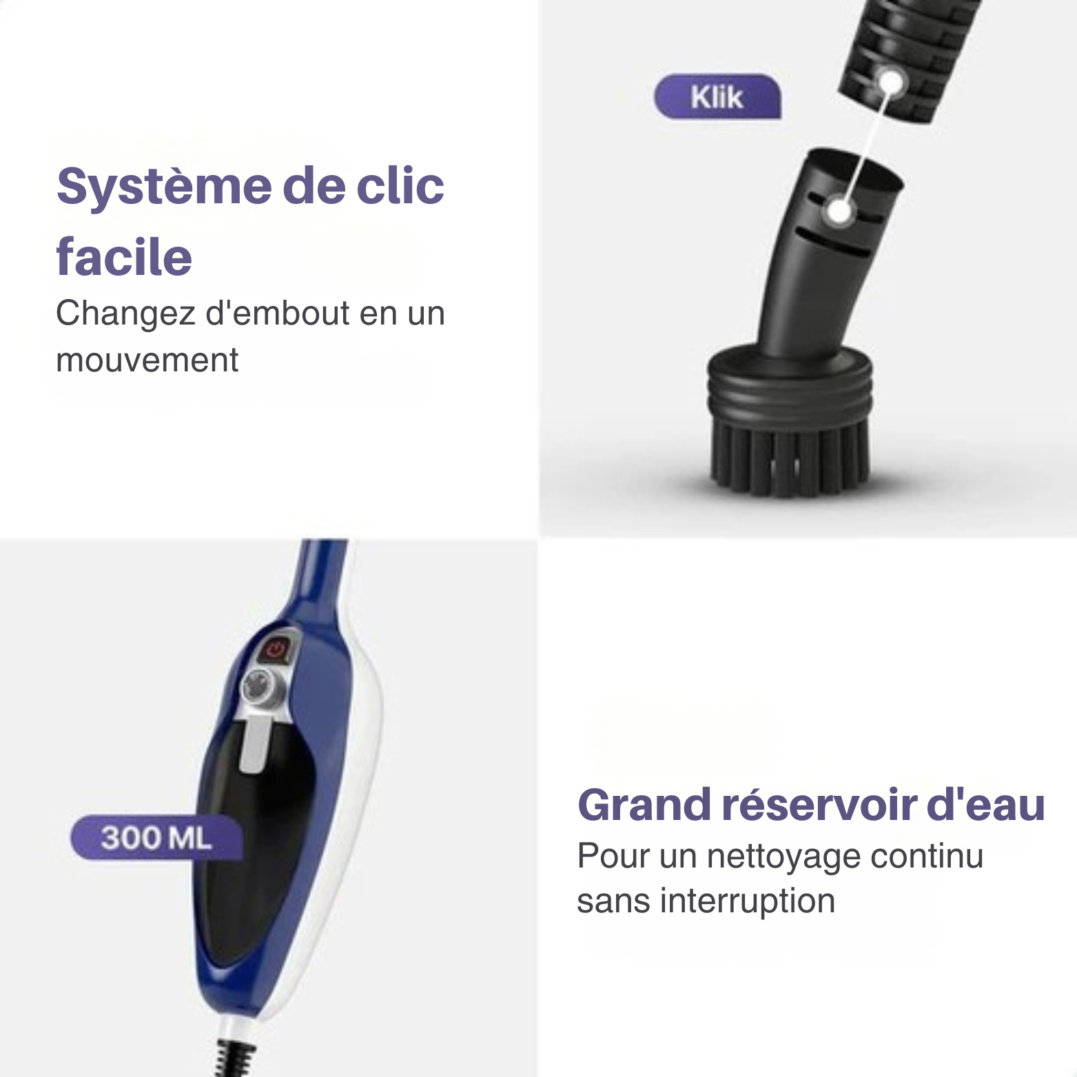 Aspirateur Vapeur 12 en 1 – LUMAN - Nettoyeur vapeur et défroisseur à main – Détachant – 10 embouts et 3 chiffons– Bleu