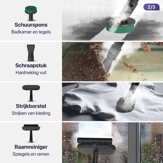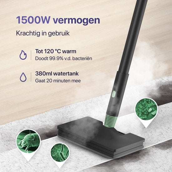 Le puissant moteur doté de la Technologie Deepclean™ chauffe jusqu'à 120 degrés et élimine toutes les taches récalcitrantes. Les 14 accessoires différents du nettoyeur vapeur Luman permettent de travailler facilement dans toutes les pièces de la maison ; de la cuisine à la salle de bain et du sol au canapé. L'heure est au renouveau. Avec le nettoyeur vapeur Luman, le nettoyage en profondeur de votre maison n'a jamais été aussi facile. Ce puissant appareil chauffe jusqu'à 120 degrés en 25 secondes, ce qui permet non seulement d'éliminer les taches les plus tenaces, mais aussi de détruire les bactéries et les moisissures. Le puissant moteur Deepclean technology™ et 14 accessoires différents garantissent des performances optimales.Cet appareil offre une multifonctionnalité, vous permettant d'effectuer une variété de tâches, des meubles et fenêtres aux sols et cuisines. Tous les coins et recoins de votre maison peuvent désormais être abordés en profondeur sans trop d'efforts. Le nettoyeur vapeur Luman est livré avec 14 accessoires différents, ce qui vous permet de nettoyer facilement les taches les plus tenaces de votre maison. Vous commencez par la cuisine ? La petite brosse est idéale pour nettoyer la cuisinière, le gril et les carreaux. Si des taches tenaces persistent, le grattoir est une excellente solution. Vous commencez dans la salle de bains ? Utilisez la brosse à carreaux pour les carreaux. La brosse à récurer est parfaite pour nettoyer le four ou le micro-ondes. Pour les sols stratifiés ou en bois, nous recommandons la grande serpillière. La brosse en microfibres est idéale pour nettoyer les meubles en profondeur. La brosse à repasser est pratique pour repasser les vêtements. Le design incurvé permet de nettoyer les coins difficiles d'accès, tandis que la brosse en acier est spécialement conçue pour les taches tenaces. Grâce au tuyau flexible, vous pouvez atteindre n'importe quel endroit sans effort. Enfin, l'accessoire essuie-glace unique vous permet de rendre les fenêtres et les miroirs complètement exempts de taches. En plus de nettoyer, le nettoyeur à vapeur Luman aide également à neutraliser les odeurs indésirables. Ainsi, vos meubles, vos tapis et votre salle de bains sentiront toujours bon et frais. Ce nettoyeur vapeur est conçu pour une utilisation facile et confortable, avec une tête facile à manipuler et un design personnalisable. Vous changez les accessoires simplement grâce à un bouton d'accessoires facile à utiliser. Le nettoyeur vapeur Luman offre une flexibilité optimale grâce à un cordon de 6 mètres et un tube de 1 mètre. Vous pouvez facilement le transformer en nettoyeur vapeur portatif en retirant le manche télescopique entre le nettoyeur et l'accessoire. Heureusement, vous n'avez pas besoin d'attendre longtemps pour commencer à utiliser ce nettoyeur vapeur Luman. En l'espace de 25 secondes, il peut atteindre sa température maximale de 120 degrés. Cette température élevée permet non seulement d'éliminer efficacement les taches, mais aussi de tuer instantanément les bactéries et les champignons. Détruisez dès aujourd'hui la saleté, les bactéries et les odeurs indésirables. Le nettoyeur vapeur Luman vous offre un moyen révolutionnaire de rendre votre maison impeccable, qu'il s'agisse des sols, des salles de bains, des tapis ou des meubles. Fourni : Données techniques :Vos avantages :