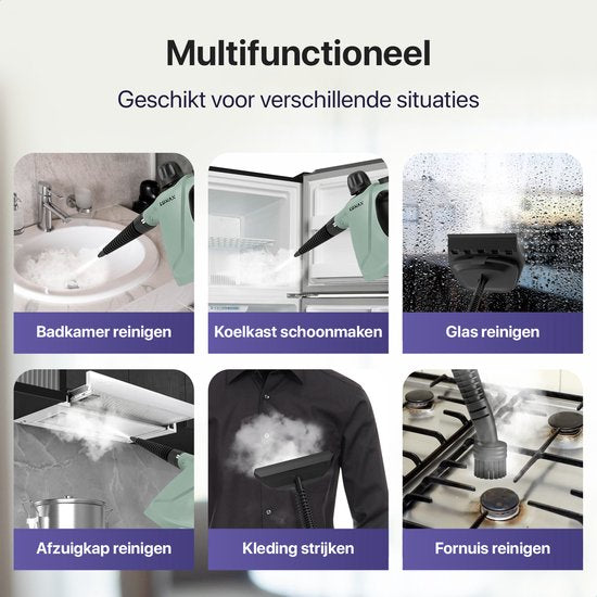 Convertissez facilement la saleté, les odeurs désagréables et les plis au passé avec le nettoyeur vapeur portatif Luman. Avec une puissante pression de vapeur de 0,26 à 0,32 Mpa, vous pouvez nettoyer en profondeur une grande variété de surfaces. Qu'il s'agisse de fenêtres, de portes, de textiles, de sièges de voiture, de la salle de bains ou de la cuisine, ce nettoyeur vapeur facilite grandement le nettoyage. Utilisez l'un des accessoires inclus pour nettoyer à la vapeur n'importe quelle surface en un rien de temps. Le réservoir d'eau spacieux de 450 ml vous permet de nettoyer plus longtemps sans avoir à le remplir entre-temps, tandis que l'appareil se réchauffe rapidement pour une utilisation immédiate.