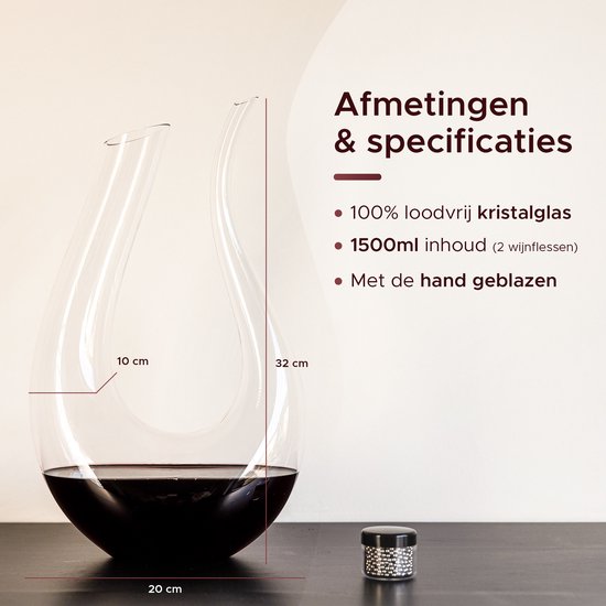 Luxwine® - Carafe à décanter - Carafe à vin - 1,5L -Incl. 1000 perles de nettoyage - Carafe à décanter - Carafe à vin