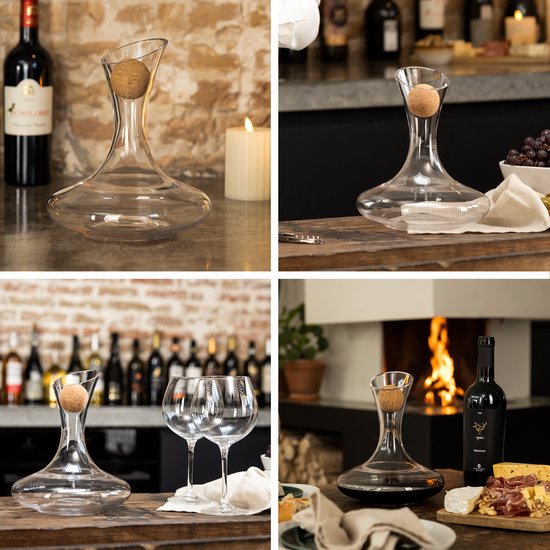 Luxwine® - Carafe à décanter - Carafe à vin - 1,45L - 1000 perles de nettoyage incluses - Bouchon en liège inclus - Carafe à décanter