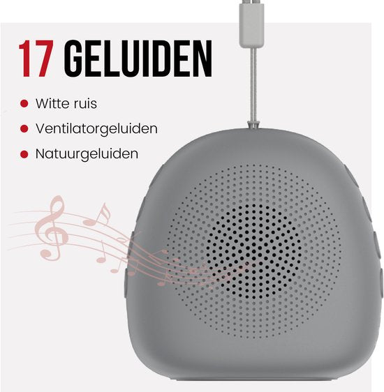 Oui, vous avez bien lu ! La machine à bruit blanc propose pas moins de 17 sons uniques au choix. Ces sons agréables conviennent parfaitement aux adultes et aux enfants. Grâce aux haut-parleurs intégrés de haute qualité, vous profiterez d'un son clair à la bonne fréquence, avec un volume réglable, de sorte que vous n'entendrez plus de bruits de fond dérangeants, tels que les ronflements.