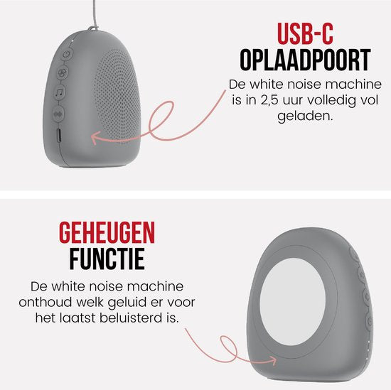 - Avec la connexion USB-C, la machine à bruit blanc est entièrement chargée en 2,5 heures !
