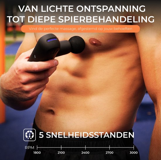 Le pistolet de massage Maicura possède des caractéristiques sans précédent. L'appareil est équipé d'une batterie puissante qui dure jusqu'à 10 heures. Cette batterie alimente un moteur silencieux mais extrêmement puissant. Quelle puissance ? C'est vous qui décidez. Le pistolet de massage vous offre le choix entre 5 vitesses, ce qui vous permet de régler l'intensité parfaite pour votre traitement. Vous pouvez facilement contrôler tout cela grâce au bouton situé près de votre pouce lorsque vous tenez le pistolet de massage. Le pistolet de massage est livré dans un emballage élégant et luxueux contenant 6 têtes de massage et un étui solide.