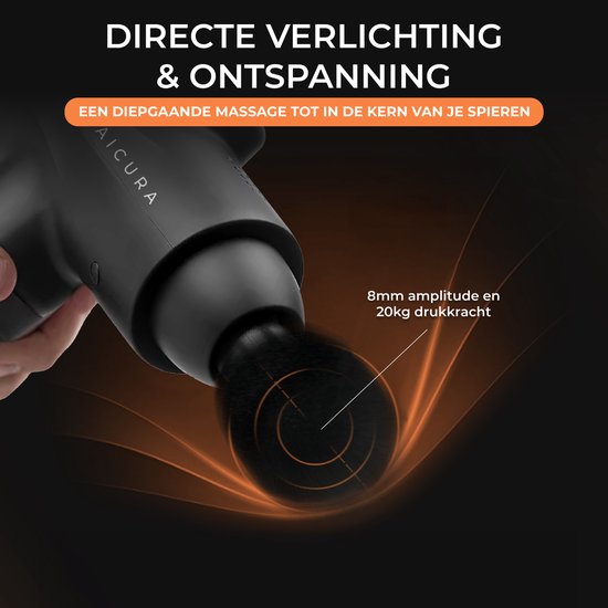 Le pistolet de massage Maicura offre de nombreux avantages. L'appareil est équipé d'une batterie puissante qui dure jusqu'à 5 heures. Cette batterie assure l'alimentation d'un moteur silencieux, mais surtout puissant. Quelle est sa puissance ? Cela dépend de vous. Le pistolet de massage vous permet de choisir parmi 10 vitesses différentes, afin que vous puissiez déterminer l'intensité adéquate pour votre traitement. Tout cela est facilement contrôlé par le bouton que vous avez près de votre pouce lorsque vous tenez le pistolet de massage. Le pistolet de massage est livré dans un bel emballage de luxe avec 10 têtes de massage et un étui solide.