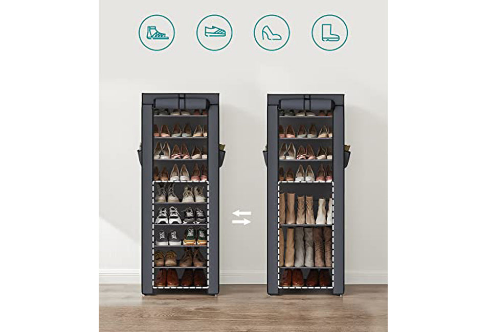 Home&Comfort Support à chaussures gris avec housse de protection - 58x28x160 cm