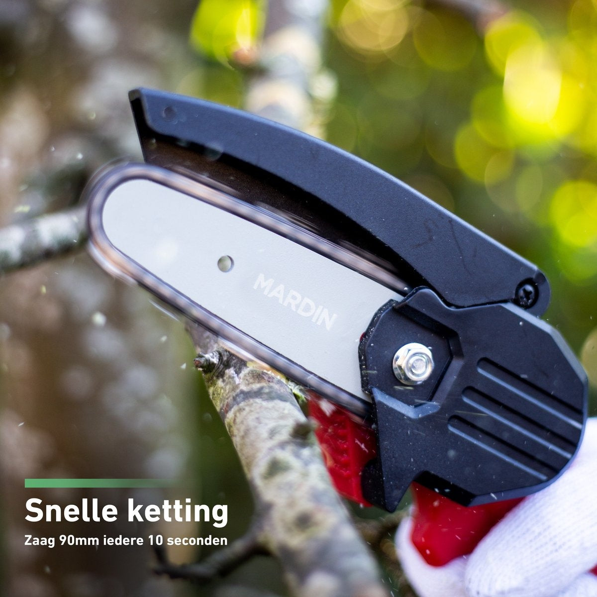 Mardin - Mini tronçonneuse - Scie d'élagage - 2 Batteries - Mallette incluse - Rouge