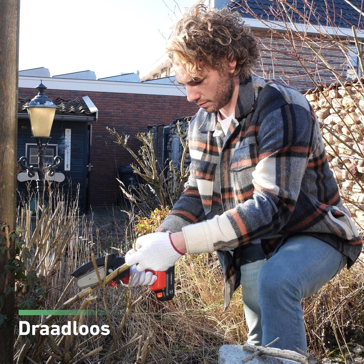 Cette mini tronçonneuse sans fil est confortable à tenir. Vous pouvez ainsi couper du bois en un rien de temps. Elle est également idéale comme scie d'élagage !
