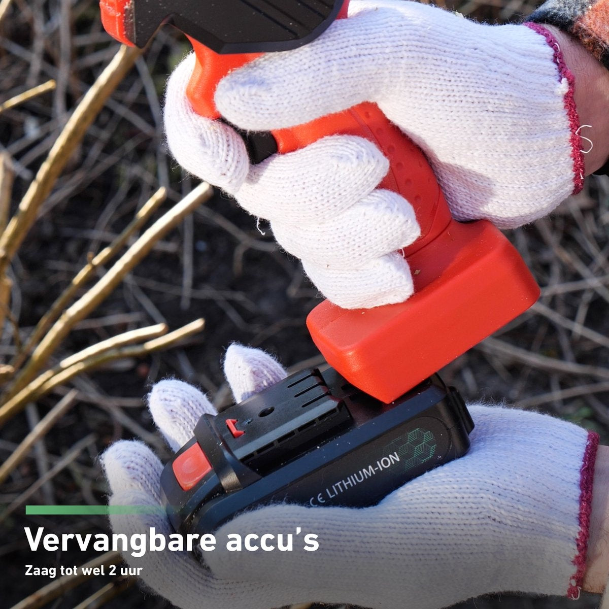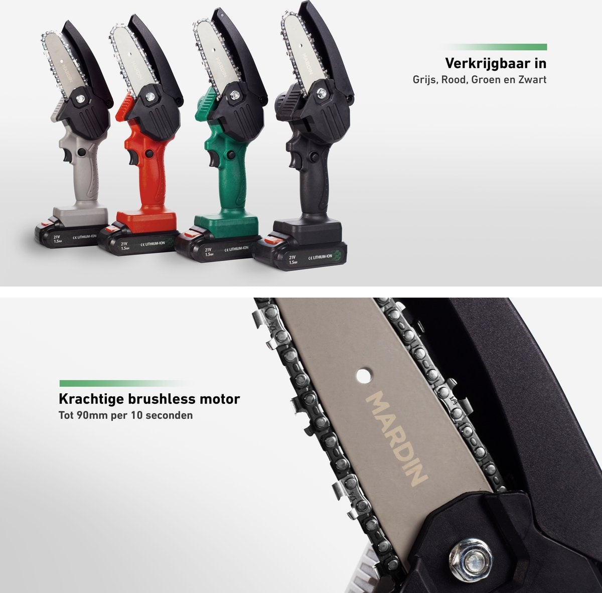 ? Entièrement sans fil - La mini tronçonneuse Mardin® - MK-1 est facile à charger sur la station de charge incluse. En seulement 1,5 heure, la tronçonneuse électrique est entièrement chargée. Avec la batterie supplémentaire incluse GRATUITEMENT, vous ne vous retrouverez jamais avec une batterie déchargée !