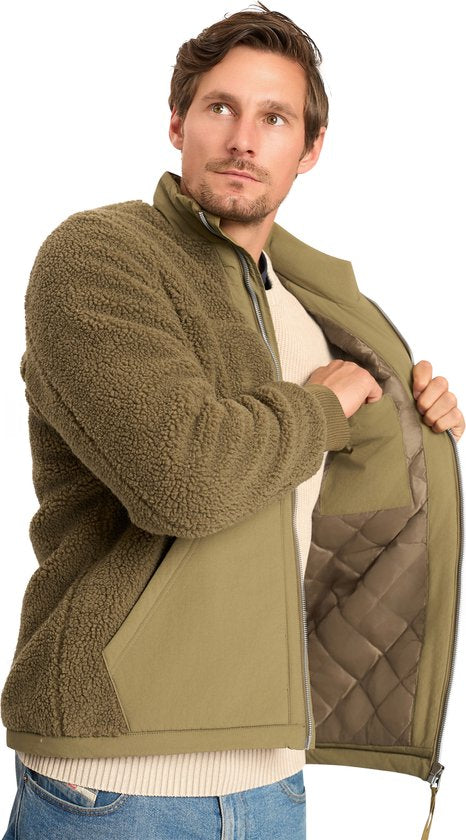 Mario Russo Teddy Jacket Stockholm - Veste homme - Manteau d'hiver homme - Cardigan homme - Army Green - M