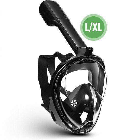 Travelhawk Snorkel Mask - Adults L/XL - Snorkel Set Black - Full Face Diving Mask - Goggles with Snorkel - Snorkelling and Diving