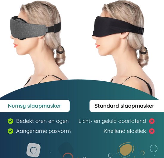 Un masque de sommeil confortable et enfin totalement occultant ! Voici le masque de sommeil ergonomique 3D de Numsy ! Vous partez en voyage et vous avez du mal à vous endormir ? Pas de problème. Le masque de sommeil réglable de Numsy vous aidera à vous endormir plus rapidement et plus profondément. Ce masque de sommeil luxueux avec bonnets pour les yeux amovibles est 100 % occultant pour que vous puissiez enfin continuer à dormir sans être dérangé ! Vos avantages : ✓ 100% obscurcissant ✓ Bonnets oculaires détachables et réglables ✓ Convient aux dormeurs sur le côté et sur le ventre ✓ Ajustement parfait pour le confort ✓ Matériau respirant et léger ✓ Lavable (eau froide) ✓ Matériau respirant et doux 100% obscurcissant Le masque de sommeil 3D de Numsy’s bloque complètement tous les rayons lumineux entrants pour que vous vous endormiez plus facilement. Que vous dormiez à la maison, en voyage óou que vous souhaitiez simplement vous éteindre, ce masque de sommeil doux fait ce qu'il est censé faire. Oreillettes amovibles et réglables Ce qui rend le masque de sommeil Numsy unique, ce sont les oreillettes amovibles et réglables. Chaque tête étant différente, il est difficile de trouver un bon ajustement. En déplaçant facilement les coques oculaires ergonomiques, vous vous assurez un ajustement parfait. De plus, les coques oculaires contiennent de la mousse à mémoire de forme qui procure une sensation de douceur. Pas de pression sur les yeux, juste du confort. Convient aux dormeurs sur le côté et sur le ventre De nombreux masques de sommeil présentent des bords et des pressions inconfortables, ce qui rend le sommeil sur le côté inconfortable. De plus, ils sont traversés par les rayons lumineux. Cette situation appartient désormais au passé. Numsy a conçu les coques oculaires de manière à ce que même les personnes qui dorment sur le côté et sur le ventre puissent profiter de l'expérience ultime ! Matériau respirant et léger Vous craignez de transpirer à l'intérieur du masque de sommeil ? Ne vous inquiétez pas. Nous avons choisi le matériau avec amour. Le masque de sommeil luxueux de Numsy’respire, ce qui signifie qu'aucune chaleur inutile ne se forme autour des yeux ou de la tête. De plus, vous remarquerez à peine que vous portez le masque de sommeil pendant que vous dormez, ce qui est tout aussi agréable !