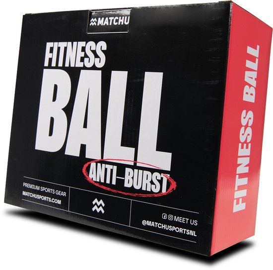 Matchu Sports - Ballon de fitness - Ballon de Pilates - Anti Burst - Ballon de grossesse - Ballon de gym - Ballon pour s'asseoir - Pompe incluse - Ø 85cm - Noir - 300 KG chargeable