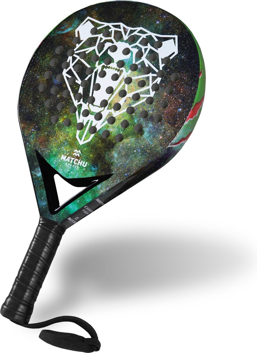 Matchu Sports - Padel Racket - Bear - Padel - Padelrackets - Rond - Carbon - Groen - Inclusief padel tas