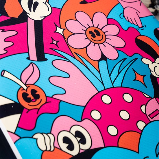YeYe Weller a collaboré avec Netflix, Samsung, Coca-Cola et Warner Bros, entre autres. Son style distinctif - joué, coloré et audacieux - prend tout son sens sur cette planche de SUP. C'est un véritable attrayant sur l'eau pour ceux qui osent briller.