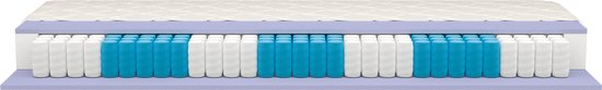 Avec des ressorts ensachés de 300 tonnes par m², en acier trempé thermiquement et enveloppés individuellement pour une liberté de mouvement maximale, ce matelas à ressorts ensachés s'adapte idéalement à votre corps. Les 7 zones de confort offrent un soutien ciblé à votre nuque, vos épaules, votre dos, vos hanches et vos jambes, contribuant ainsi à une position de sommeil saine.