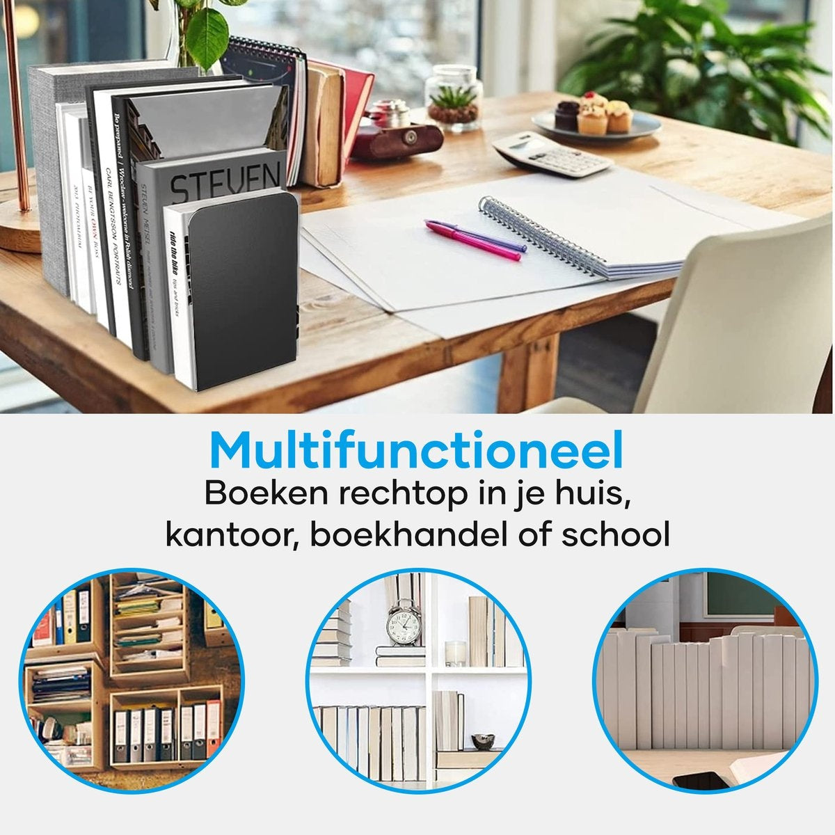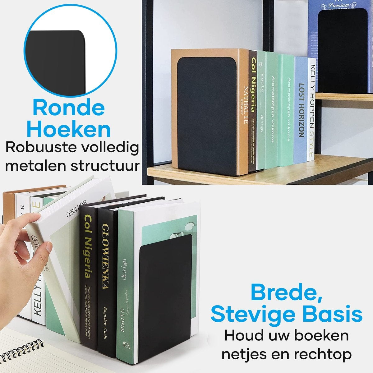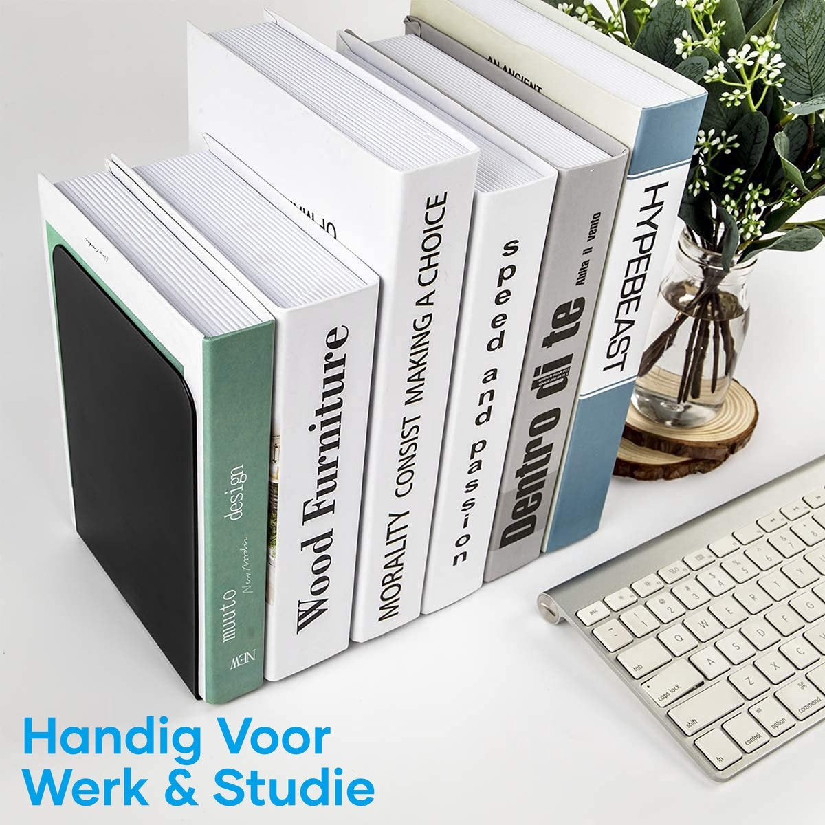 Pour que vos livres restent en place et ne soient pas abîmés, la base est large et très solide. Le métal est incassable, inoxydable et antistatique. La conception robuste et large garantit qu'aucun livre n'est trop lourd pour ce serre-livres. En outre, le matériau antistatique empêche les livres de coller et de s'accrocher, ce qui vous permet d'attraper vos livres et de les remettre à leur place.