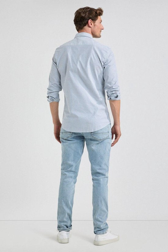 Cette magnifique chemise rayée marine de McGregor est un ajout précieux à votre garde-robe d'automne. Fabriquée à partir de 97 % de coton et de 3 % d'élasthanne, elle est merveilleusement douce et confortable, idéale pour être portée tous les jours. La coupe régulière offre un look décontracté, tandis que le col et la patte de boutonnage ajoutent une touche sophistiquée. Le motif subtil des rayures marines en fait un vêtement idéal pour les occasions décontractées ou élégantes, que ce soit pour aller au travail ou pour partir en week-end. Grâce à son design intemporel, cette chemise McGregor s'associe facilement à de nombreuses tenues. Portez-la avec un jean léger pour un look décontracté ou optez pour un pantalon soigné dans une situation plus formelle. Les manches longues et la longueur régulière offrent un équilibre idéal entre style et confort. Que vous passiez un après-midi en ville ou que vous ayez une réunion importante, cette chemise offre un mélange parfait de décontraction et de chic. Blach sun.The chlorine, Iron on lukewarm temperature to max 110°C, Machine wash at 30°C, Do not tumble dry, Do not dry clean