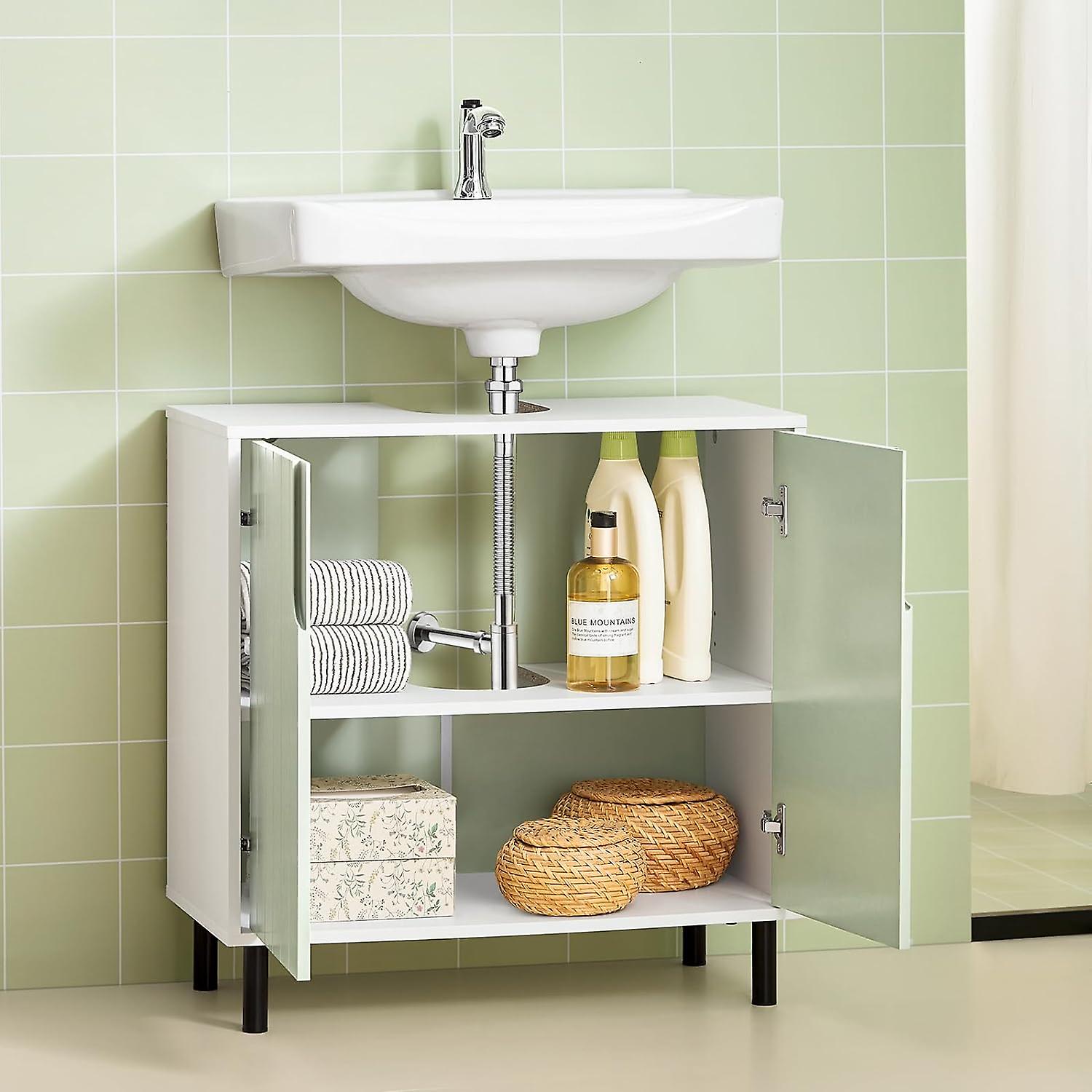 Grâce aux découpes en U intelligentes, l'armoire s'insère facilement sous votre évier. N'oubliez pas de mesurer les dimensions de votre lavabo avant d'acheter !