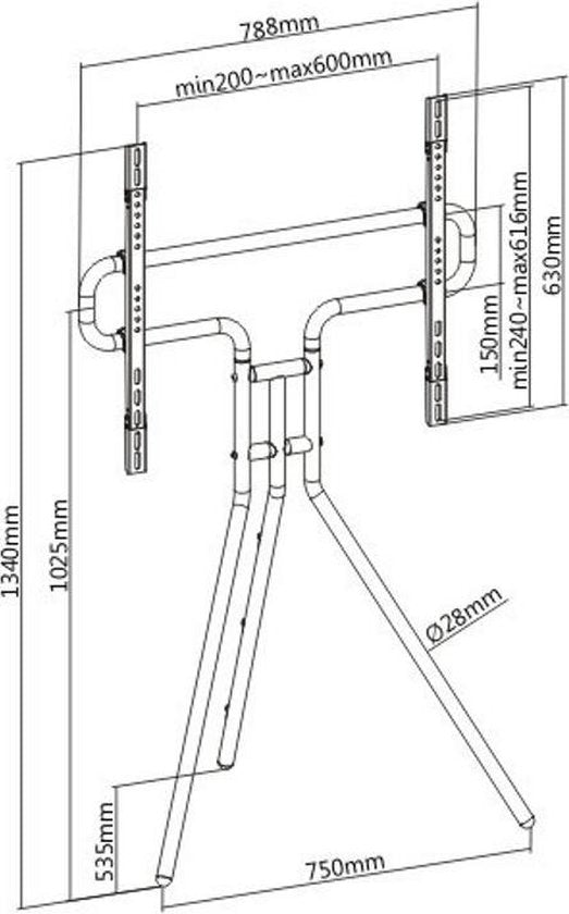 Support trépied TV chevalet de peintre, 134 cm de haut