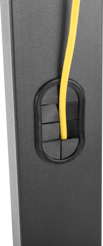 Outre sa structure durable et son aspect bien conçu, ce support TV est également orientable à 70 degrés, 35 degrés vers la gauche et 35 degrés vers la droite. Le support de télévision est réglable en hauteur par paliers de 134 cm à 145 cm.