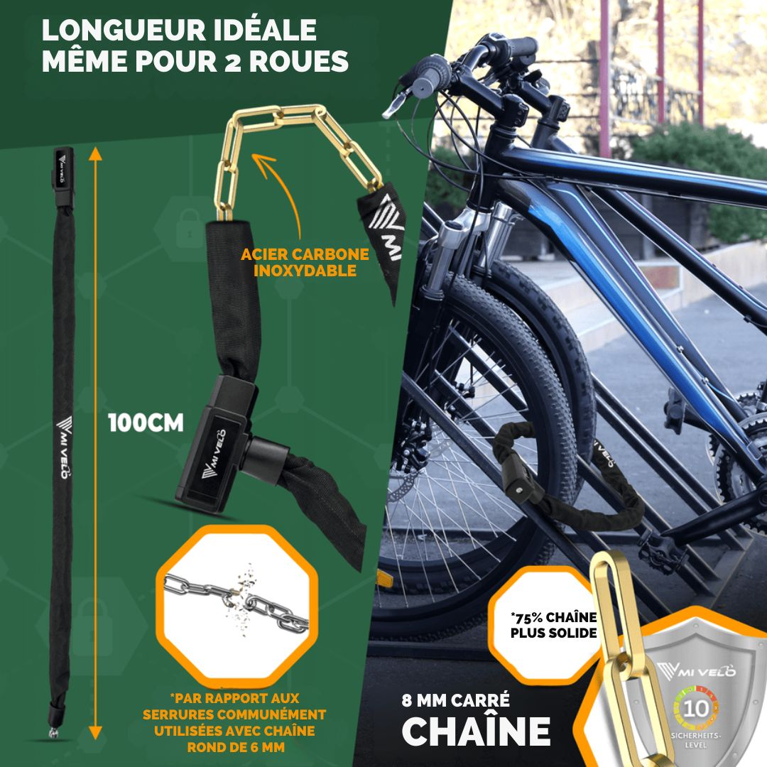Avec le cadenas à chaîne MIVELO, vous sécurisez votre véhicule en toute confiance, où que vous soyez.