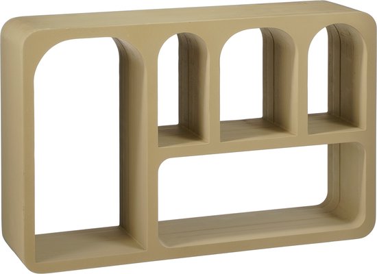 Minimaliste et élégante : l'armoire murale Frati de Mica Decorations est le complément idéal des intérieurs modernes. Cette armoire murale ouverte de couleur taupe dispose de cinq compartiments de formes différentes, parfaits pour exposer toutes sortes d'objets décoratifs. Pensez à des livres, des cadres ou des figurines que vous pouvez placer dans les compartiments. Un mur vide n'en sera que plus attrayant ! L'armoire est fabriquée en MDF certifié FSC® et mesure 60 cm de long, 15 cm de large et 38 cm de haut, avec une capacité de charge maximale de 6 kg.